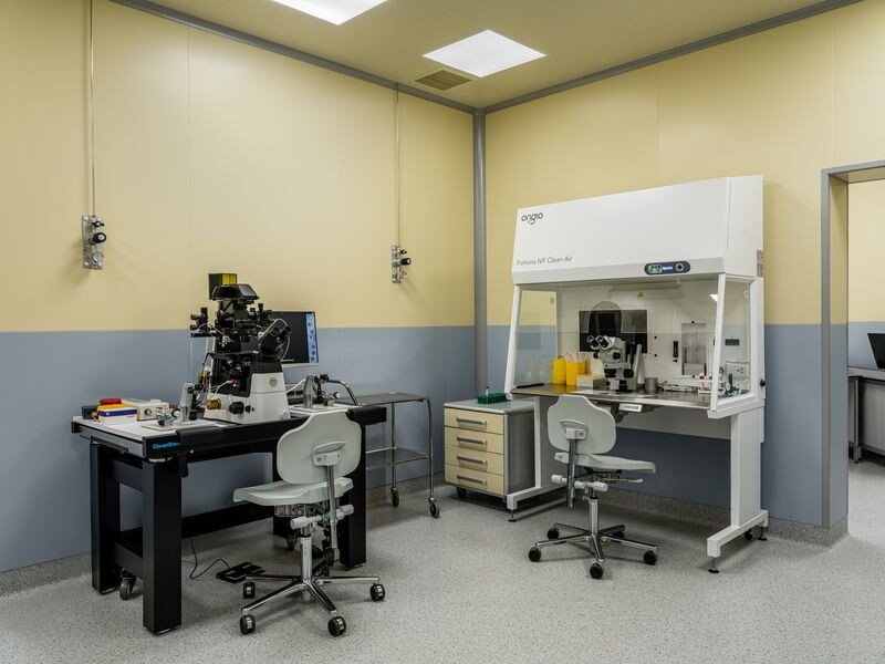 · Наша эмбриологическая лаборатория укомплектована лучшим медицинским оборудованием — передовыми планшетными инкубаторами и инновационными системами очистки воздуха Zand-air. Достигаем высокой результативности — до 79% в эффективности в циклах ЭКО.