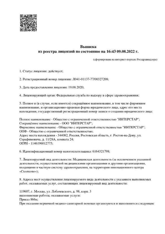Большинство ведущих специалистов Клиники +1 имеют звания кандидатов медицинских наук, высшую квалификацию и опыт работы более 15 лет.